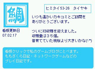 ここではアクションゲームのプレイ日記をメインにゲームの話題をいろいろ語っています。今は主にサイレン2、モンスターハンター2、メイプルストーリーをプレイしています。インターポットでは、ももざくらを栽培中です。