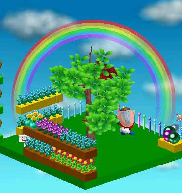 枝分かれが5つになりました。春になると、花がつくようにもなりました('-'*)お庭めぐりをしていると、他のプレイヤーのみなさんの素晴らしい庭が沢山あってとても刺激になっています。看板へのカキコミも間もなく60カキコを越えます。交流の中で多くの贈り物もいただき、そろそろ赤い石やオブジェも増えてきたのでイベント開催でもしようかと考えているところです。